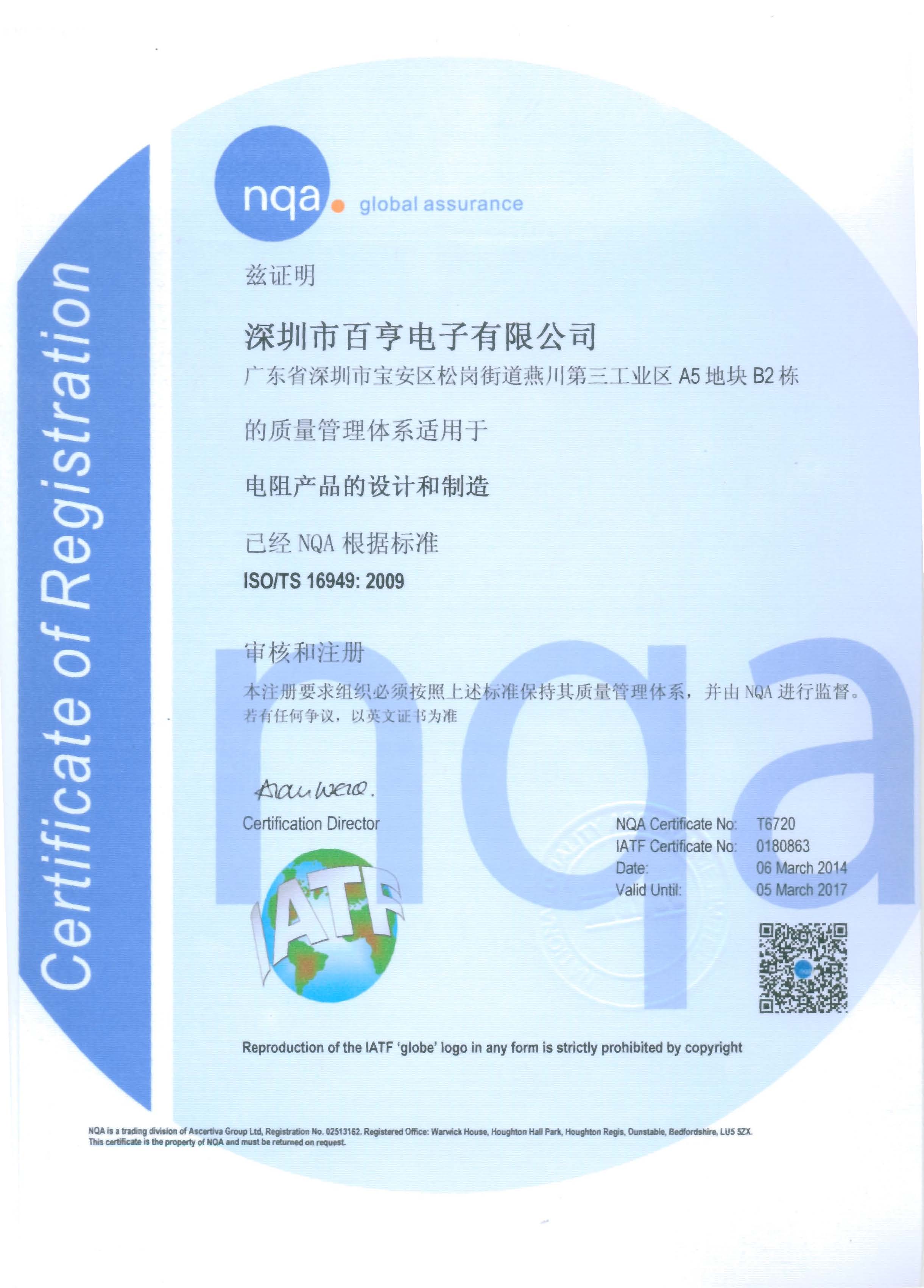 We successfully got the certification of TS16949 automotive industry standards in 2013.